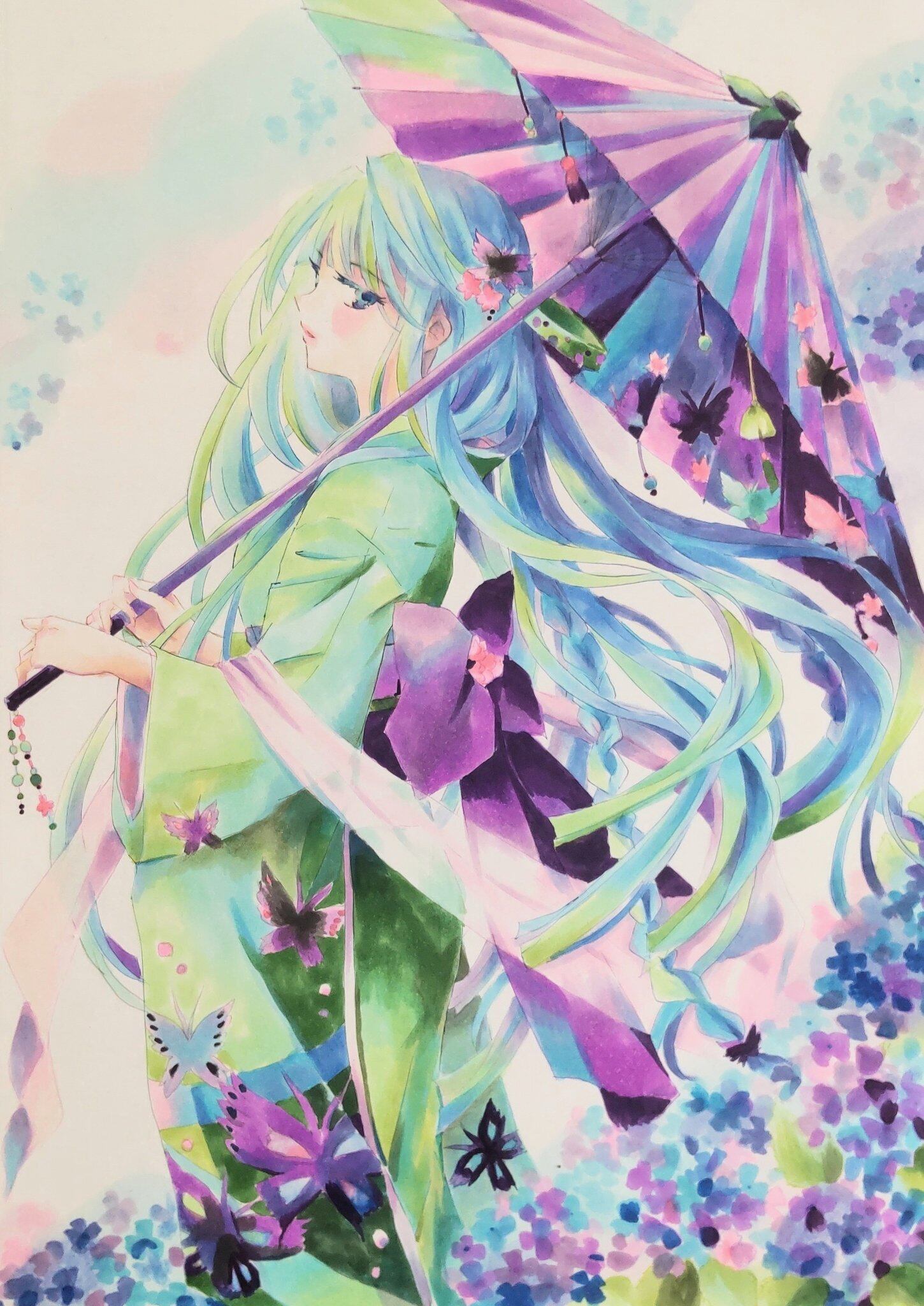 【紫陽花の散歩道】原画作品(フレームレス)
